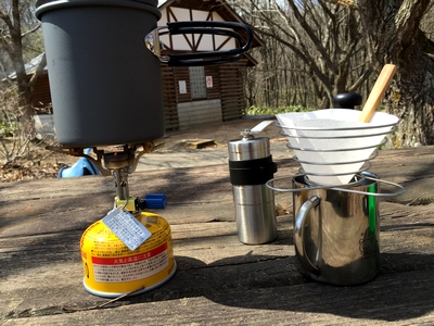 ひとしきり撮り終えて、聖湖キャンプ場で今年初の二人で野外コーヒー。