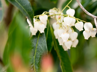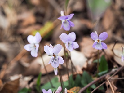 山道にはスミレやアセビが咲いている。