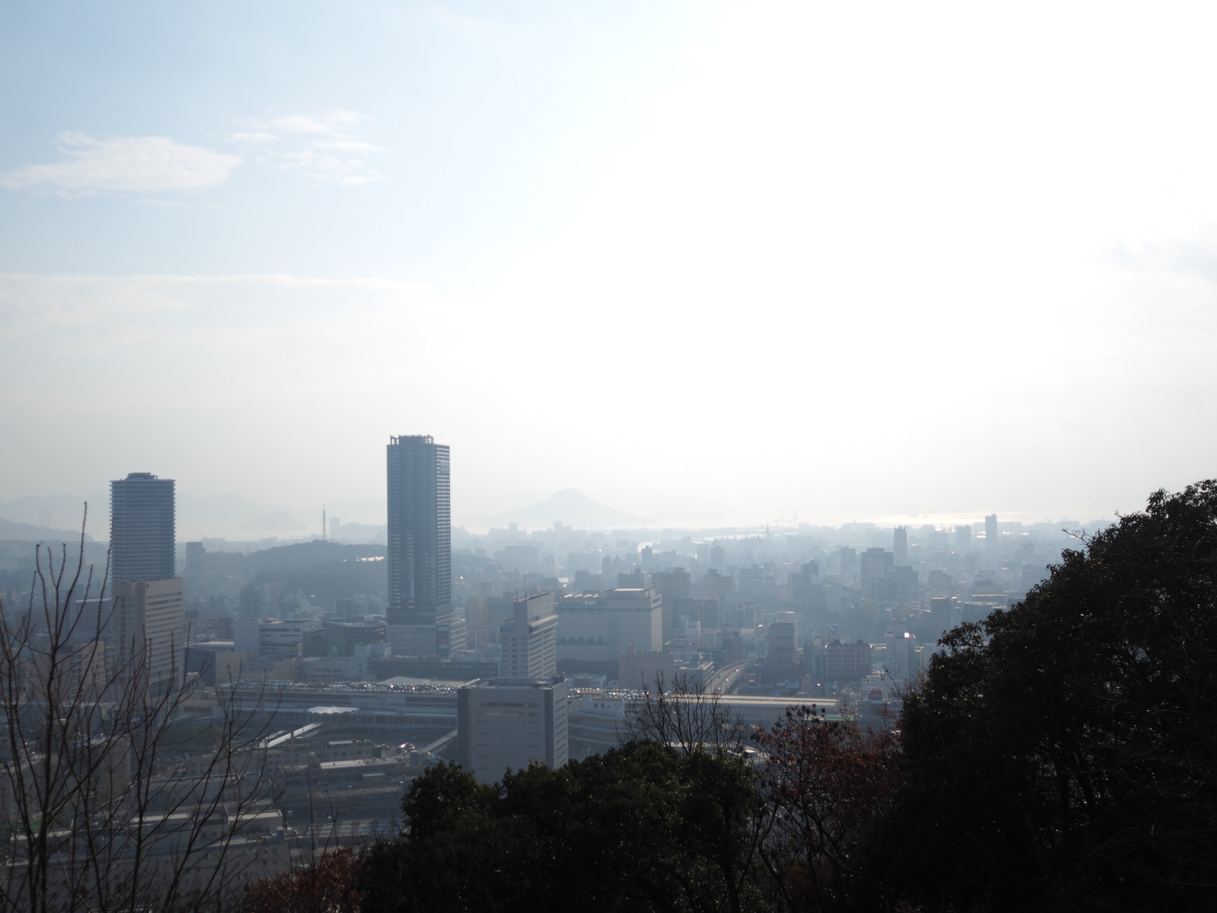 今日の瀬戸内海方面はかすんで、似島がかすかに見える。