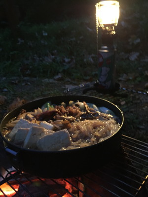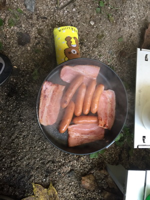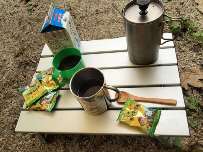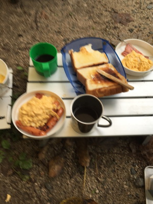 夜中は結構な降りで、タープを打つ雨音が大きかった。