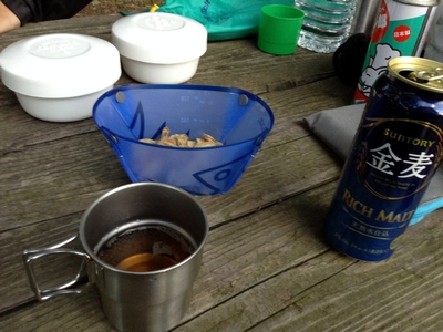 キャンプ場に戻って、まずは禁断のビール。(何が禁断なのかわからんが)
