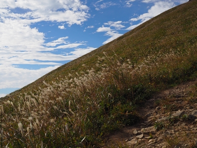 一面ススキの原で、幻想的な風景だが、ひ~こら。