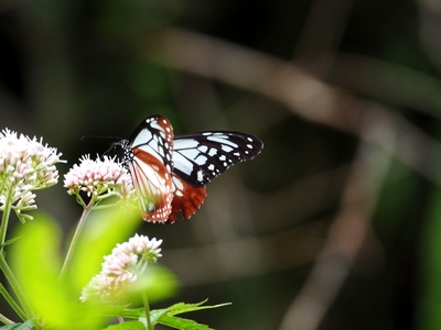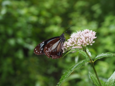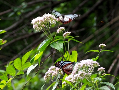 その羽ばたきに驚いたアサギマダラがふわふわと舞っている。