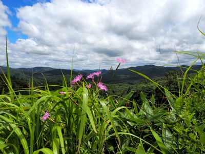 雲月峠の駐車場までの道沿いに、ナデシコが盛んに咲いているので、ナデシコを愛でつつ東屋下の駐車場まで下りて、そこから登ることに。