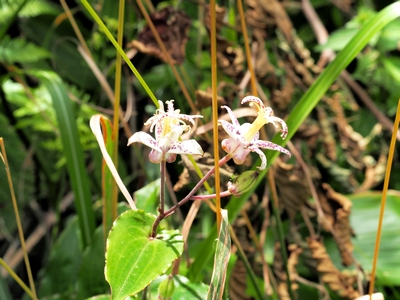 そのあたりから植生が変わってササの原になり、なんだか花も見えないし。と思っていたら、嫁様はカキランの写真をしっかり撮っていた。