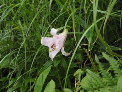 ササユリはしおれ始めていたが、顔を近づけると甘く上品な香り。