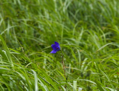 登山道沿いには、キキョウが咲いているのが見える。