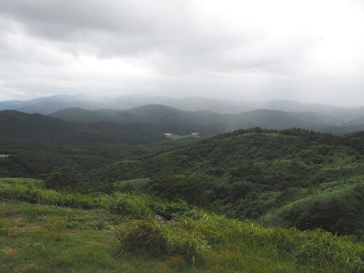 頂上からの風景。雨が迫ってきている。