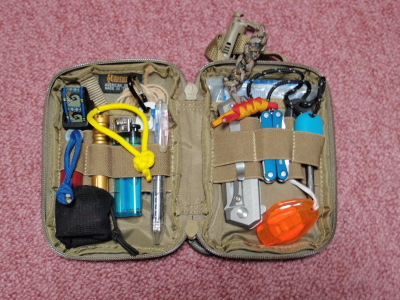 マックスペディション・マイクロ・ポケット・オーガナイザーに入れていたのに、ファイヤースチールと麻ひもをプラスしてみた。