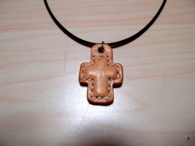 ハンズでネックレス用のチェーンとか、留め金付き革紐を買って取り付けてみた。