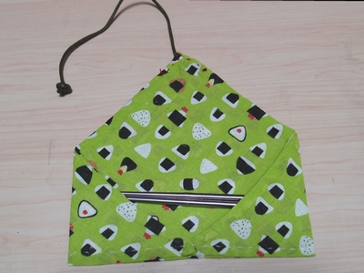 手ぬぐいを短辺に合わせて正方形に切り、三角形に畳んで縫っていく。