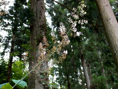 間違って歩いたさっきの道にも、しおれかけのヤマジノホトトギス、ホソバシュロソウ、ハギ、クズ、ヌスビトハギ(?)、ネムはまだ花があったり実をつけたりした。
